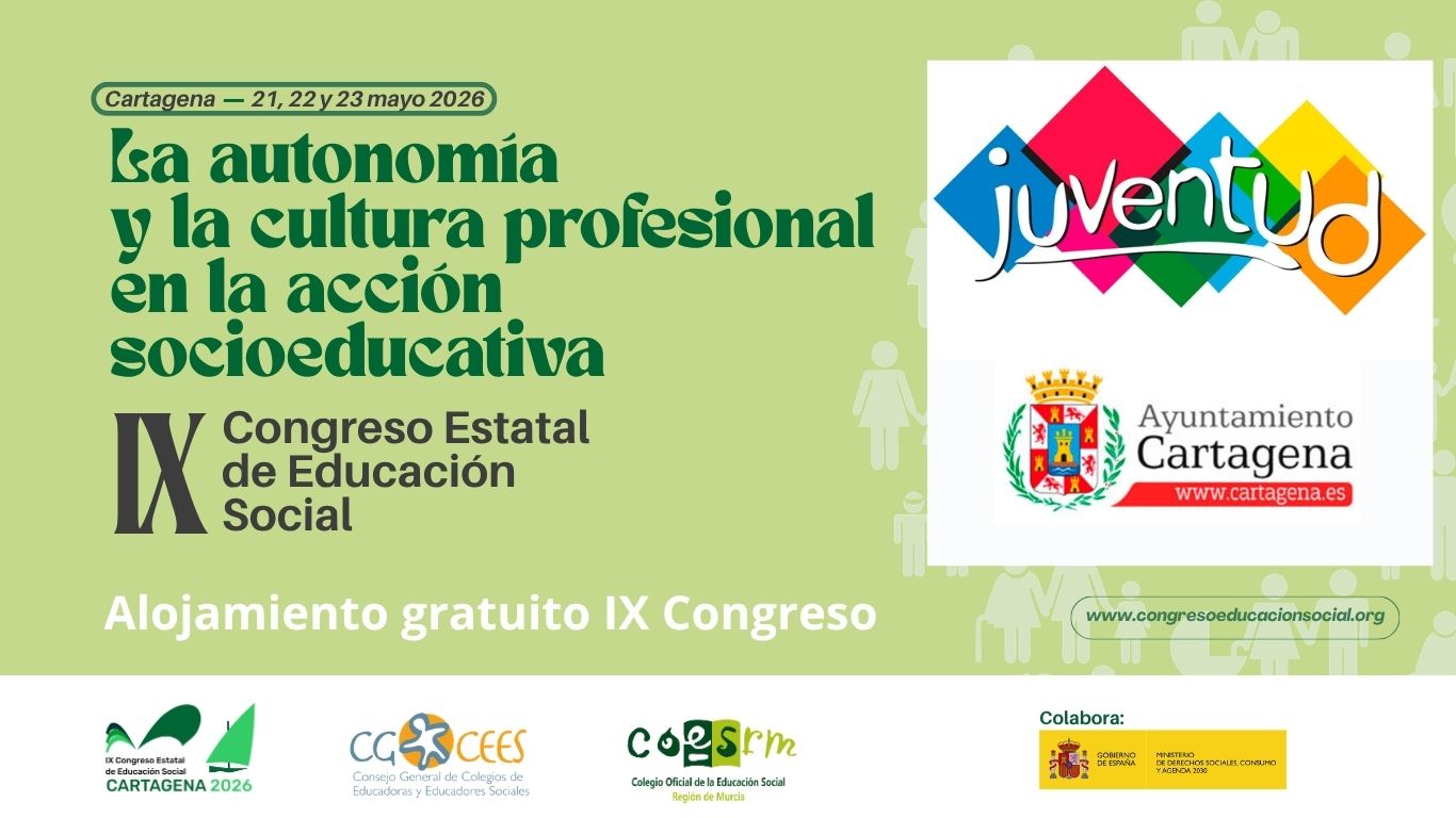 Os informamos que fruto del acuerdo cerrado con la Concejalía de Juventud del Ayuntamiento de Cartagena, las personas asistentes al IX Congreso Estatal de Educación Social Cartagena 2026, podrán optar a alojamiento gratuito. La organización ofrecerá de forma totalmente gratuita las 50 plazas de alojamiento y la zona de acampada para 50 tiendas (200 campistas) situadas en el Centro Juvenil de Canteras.