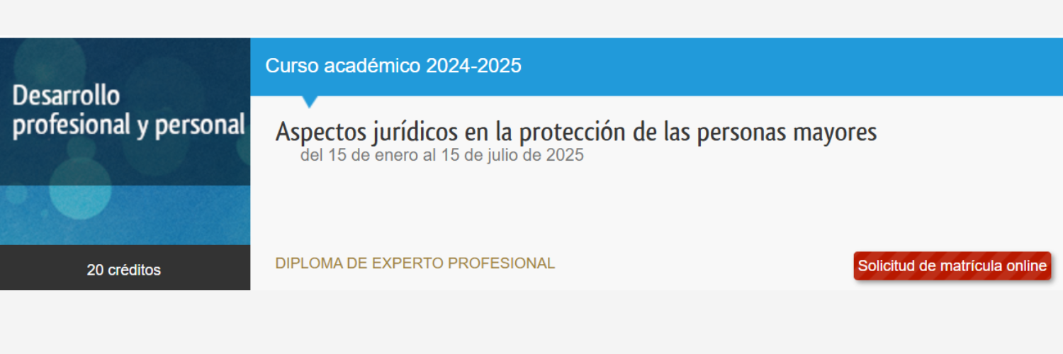 Este curso está destinado a quienes por razón de su experiencia, personal o profesional, han desarrollado una especial inquietud con relación a las personas afectadas por situaciones de discapacidad, o en general con las personas mayores, y la desprotección social y jurídica en la que a veces se encuentran, y necesitan un soporte formativo técnico en esta materia. Son, por tanto, sus destinatarios naturales profesionales de residencias y centros asistenciales, trabajadores sociales o estudiantes de este Grado o del Grado en Educación Social o en Derecho, asistentes sociales, psicólogos, funcionarios de justicia y profesionales de la salud, y en general todas aquellas personas que, por estar próximas a estas materias, quieran desarrollar los conocimientos relativos a los aspectos jurídicos más relevantes de las mismas. En todo caso, no se requiere ningún requisito académico previo de acceso.