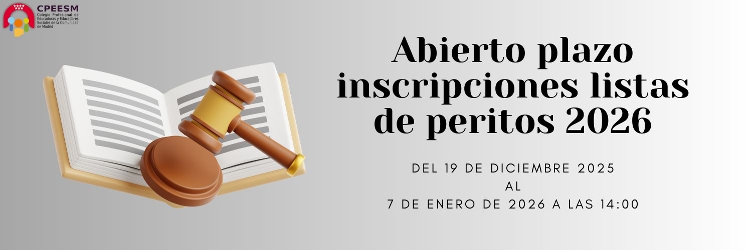 La Ley 1/2000, de 7 de enero, de Enjuiciamiento Civil, en sus artículos 335 al 352, regula el peritaje judicial. En concreto, el artículo 342 prevé que se instará a los Colegios profesionales que remitan una lista de colegiados o asociados dispuestos a actuar como peritos judiciales. En este sentido, se procede a la convocatoria para la formación de la Lista de Peritos Judiciales del Colegio Profesional de Educadoras y Educadores Sociales de la Comunidad de Madrid.
