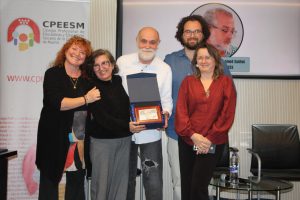 A lo largo de este lunes, 23 de marzo, con motivo de la celebración del XVI Aniversario del Colegio Profesional de Educadoras y Educadores Sociales de la Comunidad de Madrid (CPEESM) sin duda, el momento más emotivo del acto tuvo lugar en la entrega del Premio Honorifico a Alberto Fernández de Sanmamed Santos , quien fue el primer presidente del Consejo General de Colegios de Educadoras y Educadores Sociales y una figura determinante en la historia de nuestro colegio.